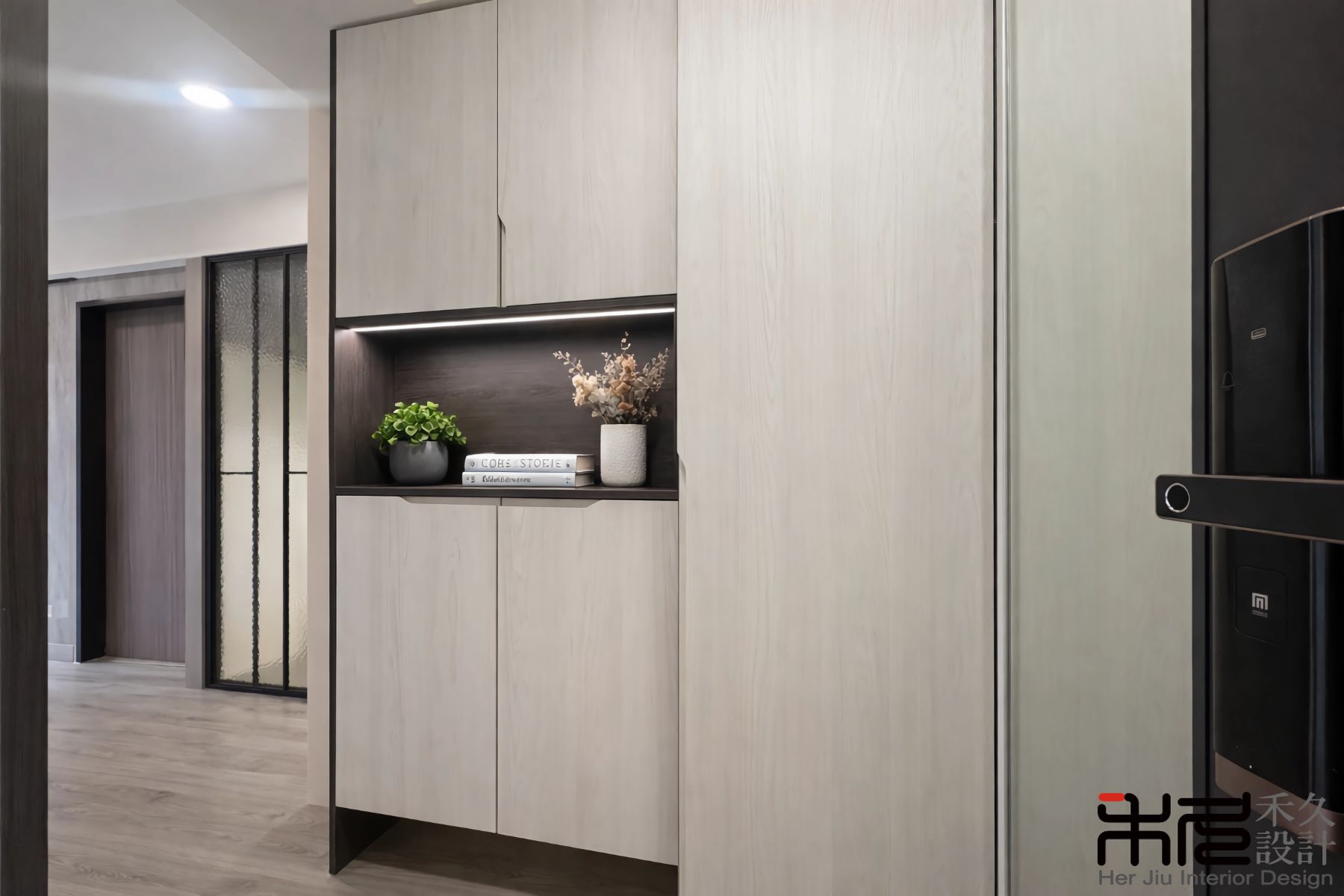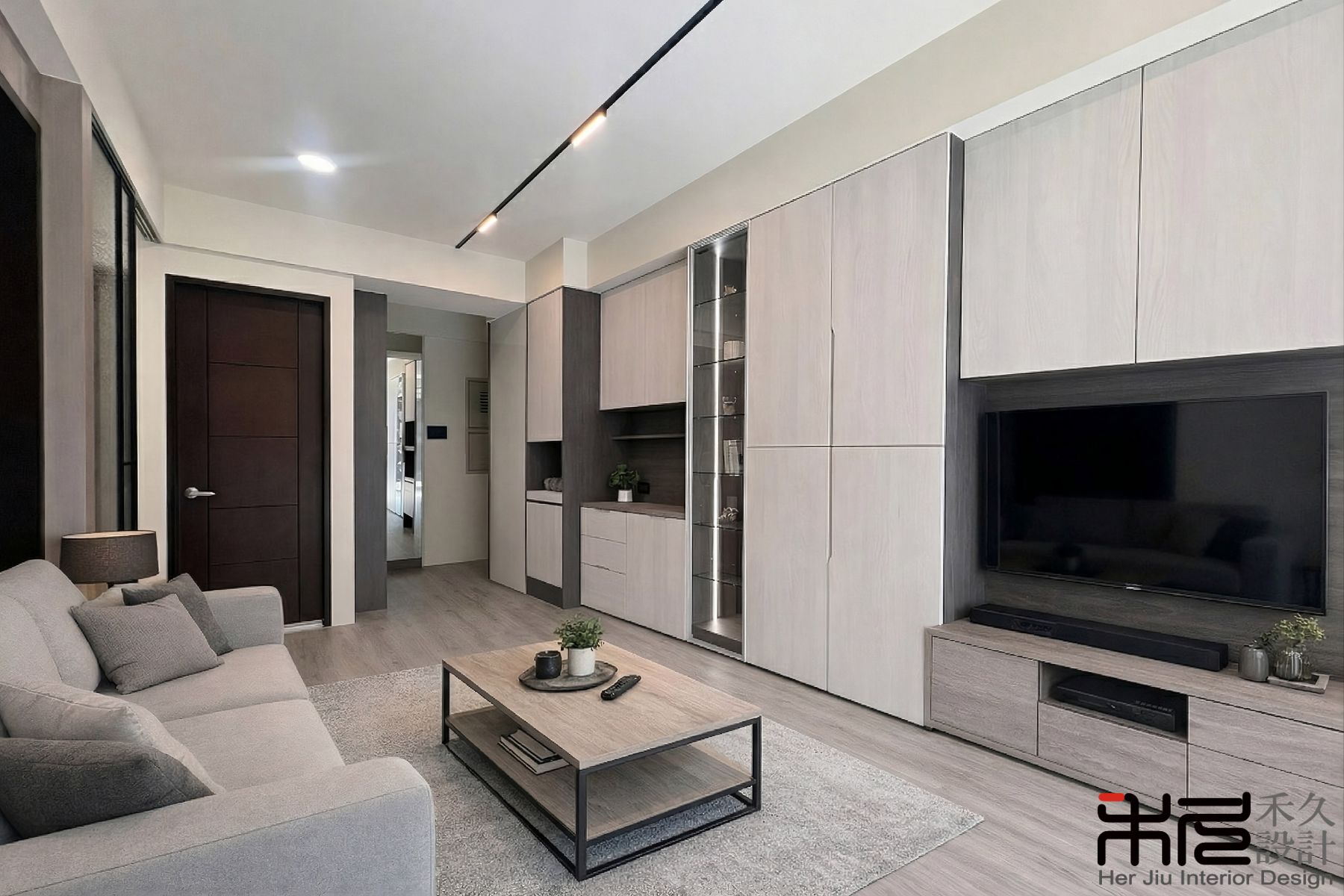 - 主要材料|磁吸美耐板、磁吸軌道燈、鋁框拉門、隱藏門工法、隱藏式踢腳板設計、超耐磨木地板